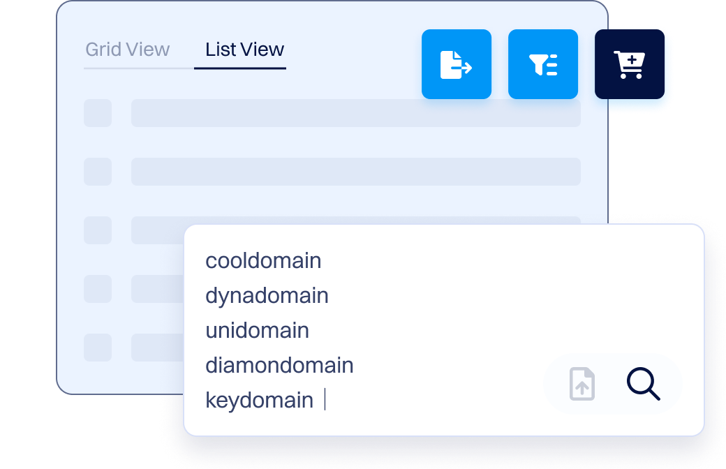 Paste a list of names, pick your TLDs, and see what is available in seconds.Add all available searched domains to your cart with one click.Options
