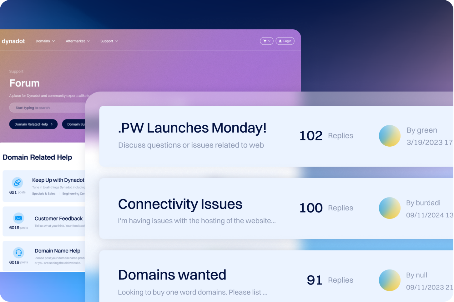 Join our community of users and experts to share experiences, get advice, help buy & sell domains, and find solutions to challenges.