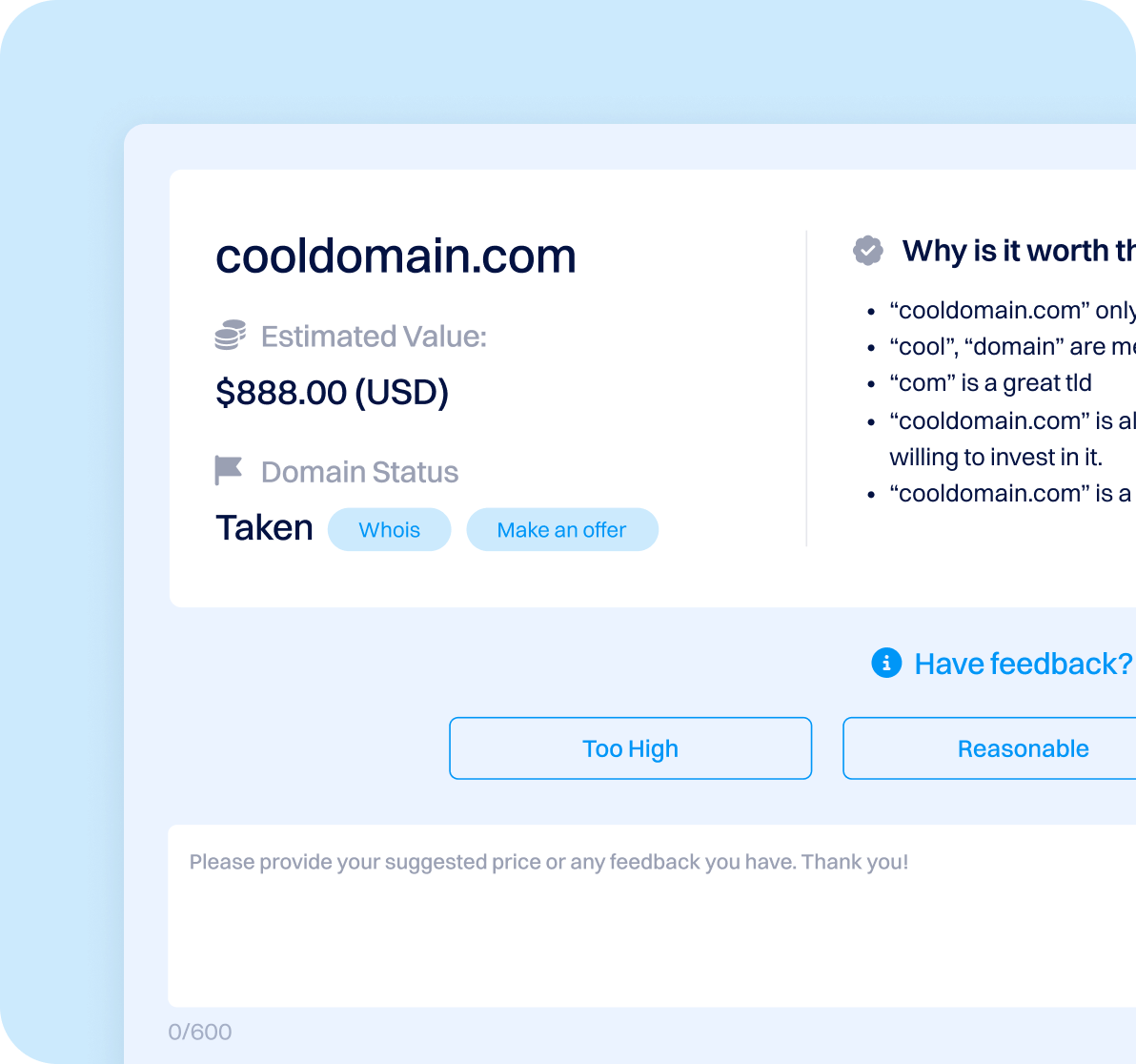 Discover the perfect domain and make data-driven investment decisions with our comprehensive search, analysis, and valuation tools.