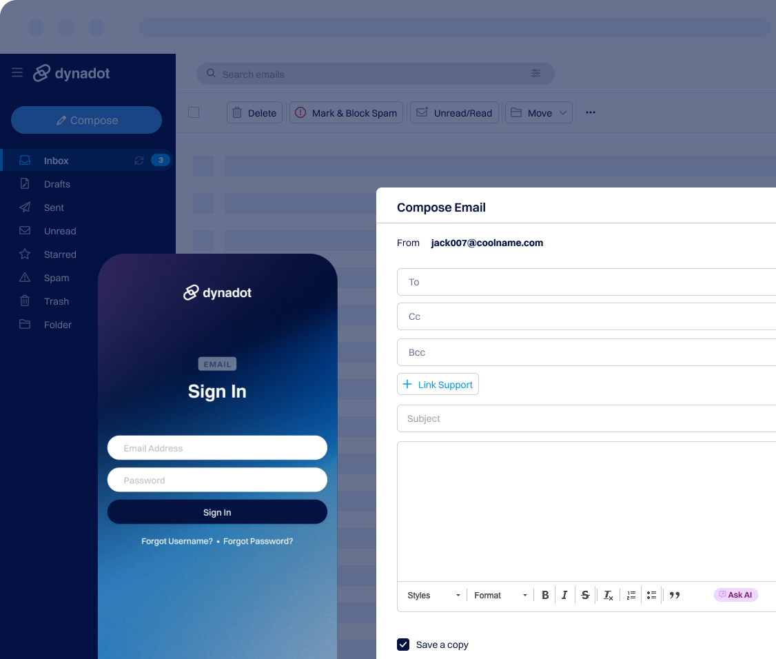 Get started with a free simple custom email. Every Dynadot domain comes with a free email address.