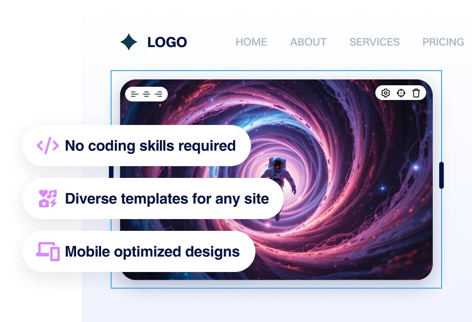Let our AI template take the reins and structure your stunning website.