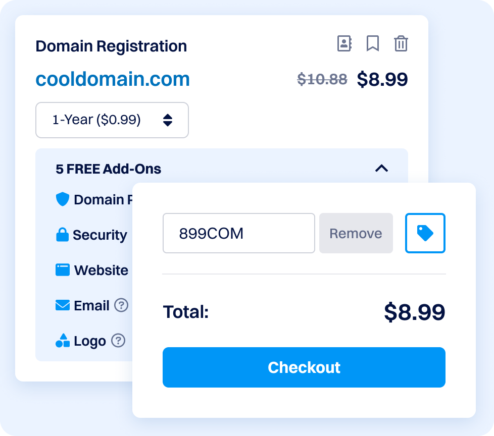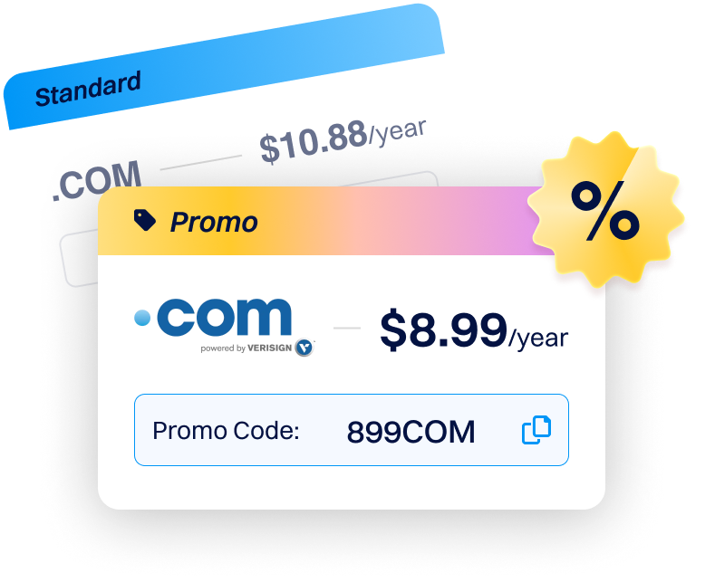 Введите промокод 899COM при оформлении заказа, и ваш домен .COM будет снижен до $8.99!