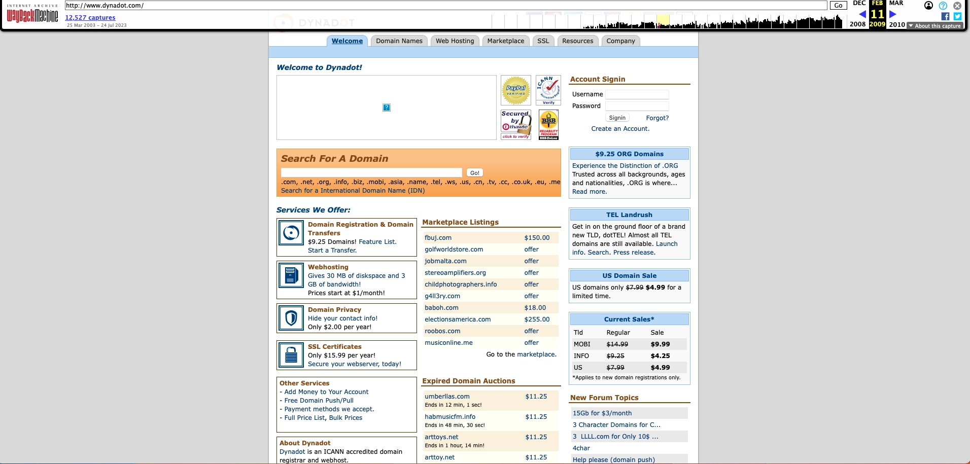 For example, we searched for dynadot.com and went back to February 11th 2009.
