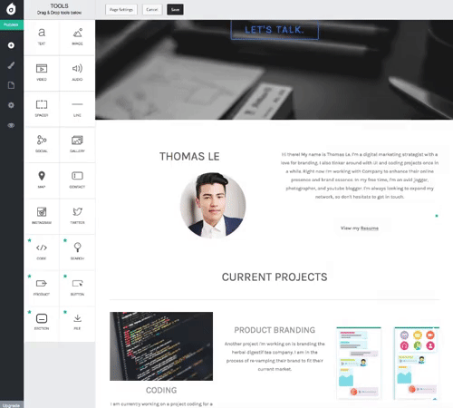 The Text tool gives you free reign to talk about your side projects, hobbies, values, and goals. You can also summarize your resume and important achievements. This tool allows you to say more than you could on a one-page resume.