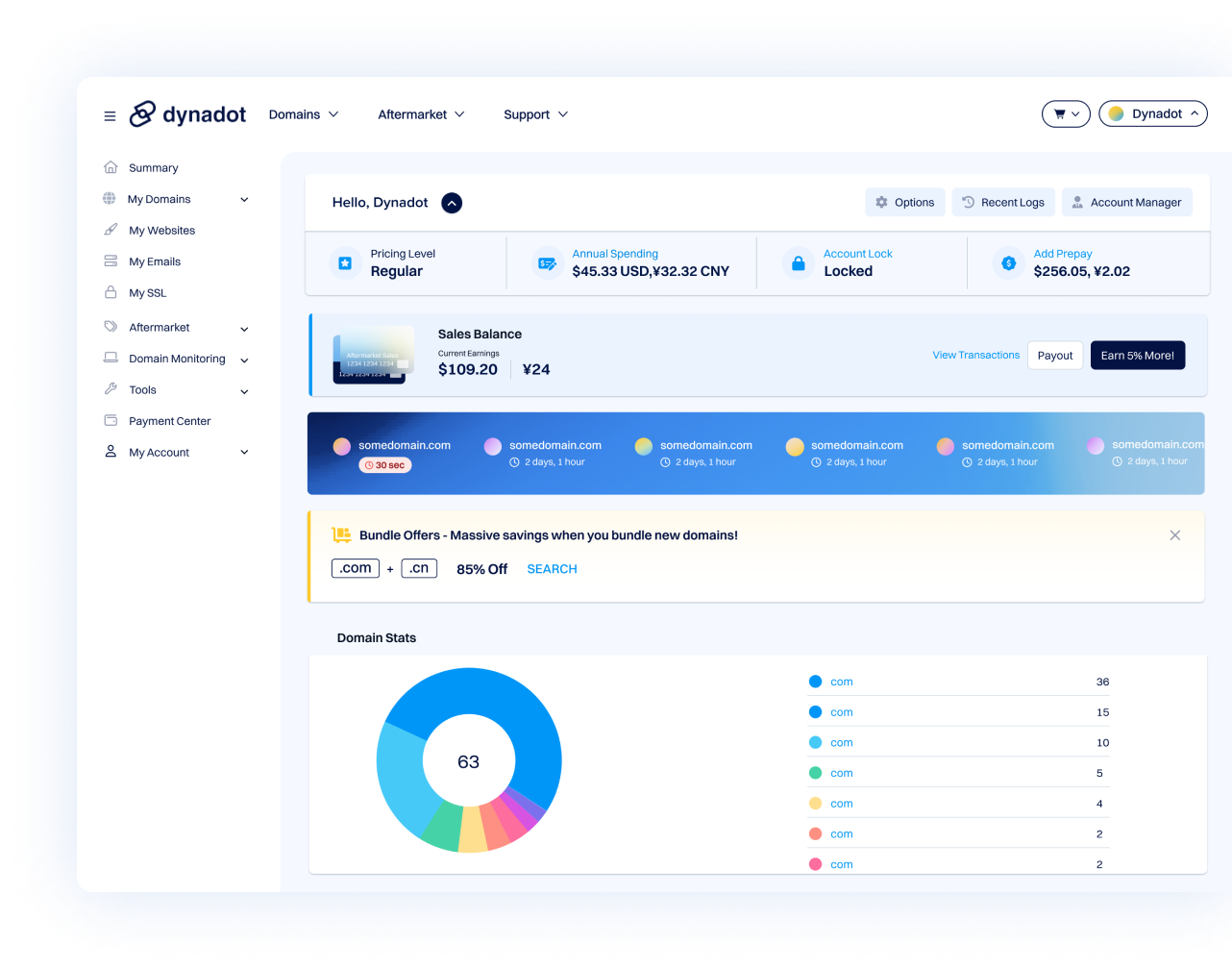 Save time by loading up your Dynadot account with prepay, making transactions even more quick and effortless.