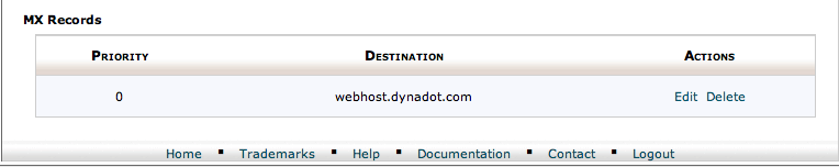 1. Click on the "Delete" button next to the appropriate MX entry.