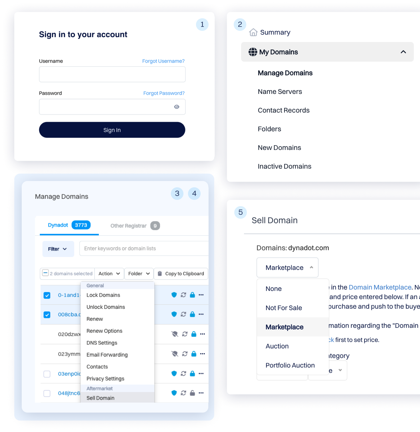在Dynadot用户市场列出您的域名的流程: